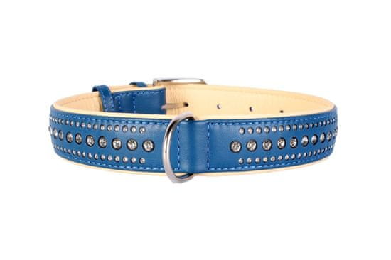 WAUDOG Usnjena ovratnica s kristali modra za velike pse Obseg vratu: 46-60 cm, širina: 35 mm