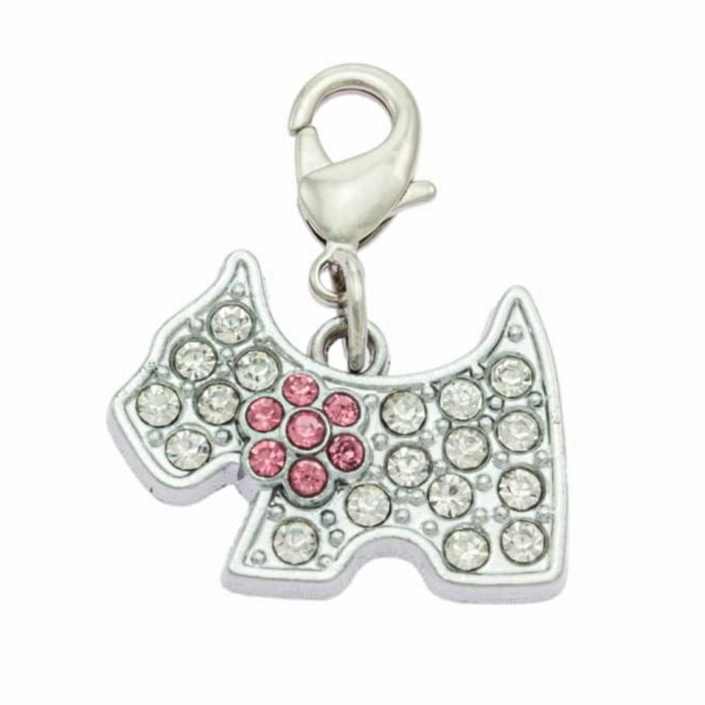 Obesek za ovratnico v obliki psa, inkrustriranega s kristali.