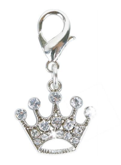 Obesek za ovratnico v obliki krone, ki je posuta s kamenčki.S karabinom ga lahko pritrdite kamorkoli.Material: cinkova zlitina, kromirana površinaRazmera: 2,5 × 2 cm Proizvajalec: JUKO petfood s.r.o., U Cihelny … Celoten opis