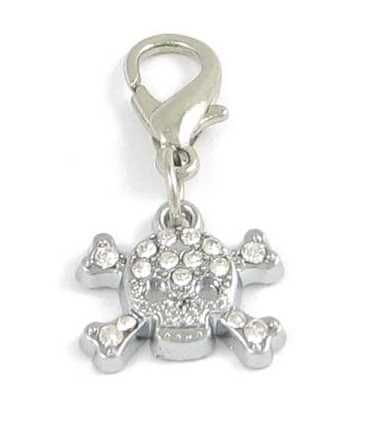 Obesek za ovratnik v obliki lobanje, posut s kristali.