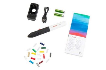 Ergonomska oblika pa poleg tega omogoča dodatno udobje in prijeten oprijem med delom. Lepilno pisalo pri lepljenju, pritrjevanju ali popravilih ponuja svobodo brez kabla z okolju prijaznimi baterijami AA za ponovno polnjenje.