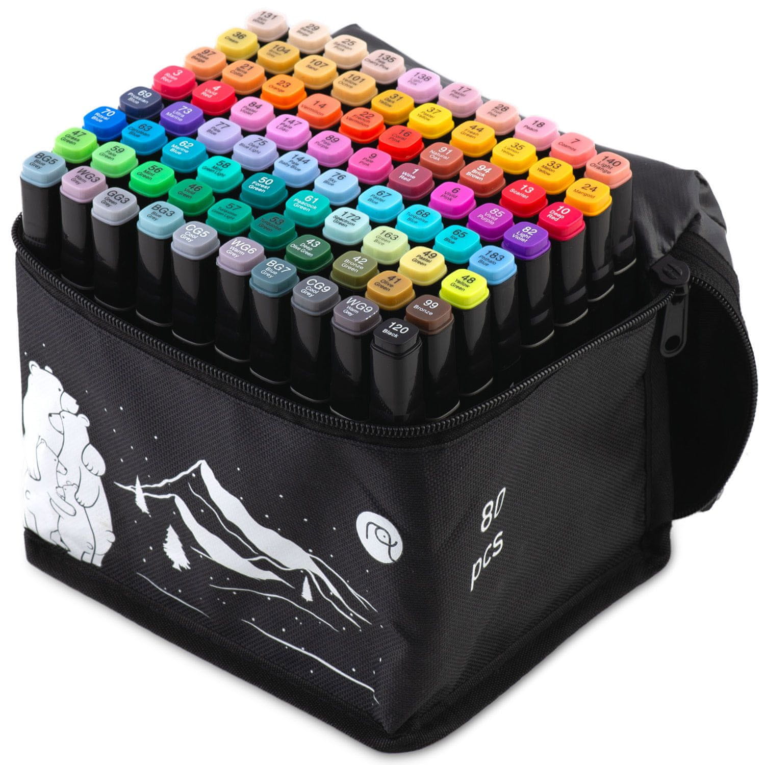 Alkoholni markerji z vrečko (80 kosov) Nukido: NK-912 Celotna paleta možnosti – 80 markerjev za umetnike in hobiste!