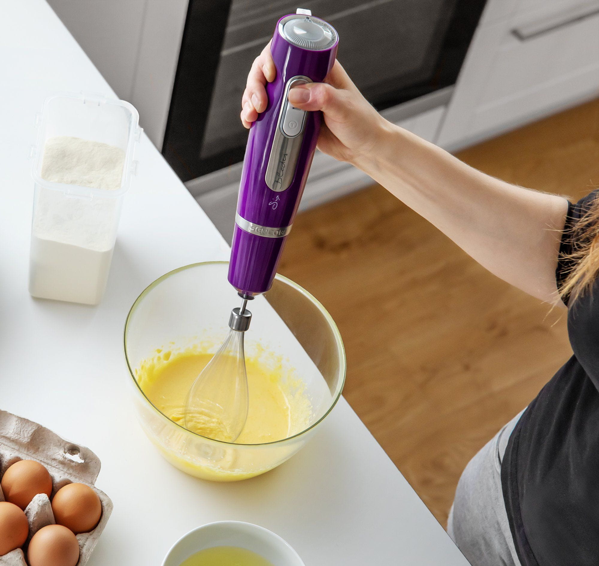 Palični mešalnik z močjo 1000 W s tehnologijo Active Speed. SENCOR SHB 4465VT-EUE3 ima 6 rezil iz nerjavečega jekla s prevleko iz titana in funkcijo ICE Crash. Dodatki vključujejo 700-mililitrsko posodo s pokrovom, 500-mililitrski sekljalnik in metlico za stepanje. Celoten opis