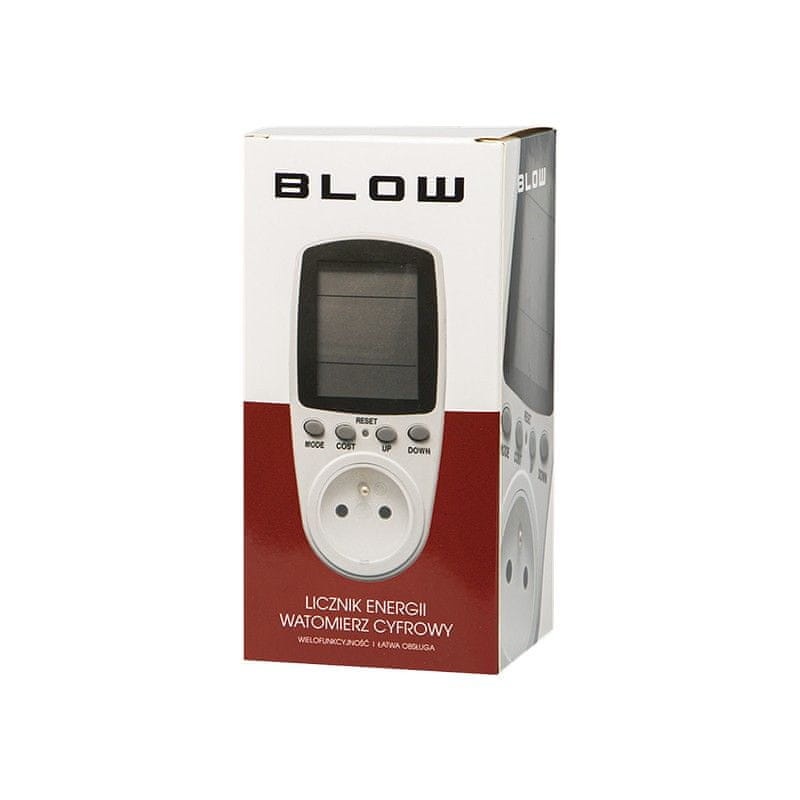 Merilnik porabe energije blagovne znamke Blow se uporablja za stalno spremljanje porabe energije naprav, ki so nanj priključene. Prikazuje informacije, kot so: napetost, tok, moč, kumulativna skupna energija, frekvenca, faktor moči. S pomočjo voltmetra enostavno uresničimo varčevalni načrt in zmanjšamo stroške električne energije.
