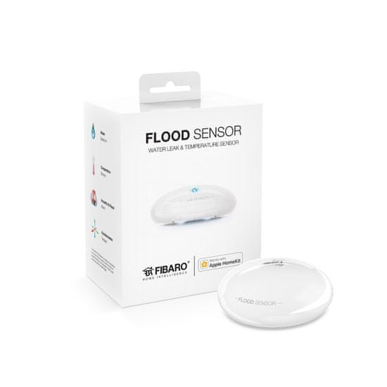 FIBARO senzor izlitja tekočine (FGBHFS-101) / FIBARO Flood Sensor predstavlja pomembno protipoplavno zaščito vašega doma; lesenih ali PVC tal, pohištva in drugih naprav, ki jih nenadzorovan izliv vode lahko popolnoma uniči.