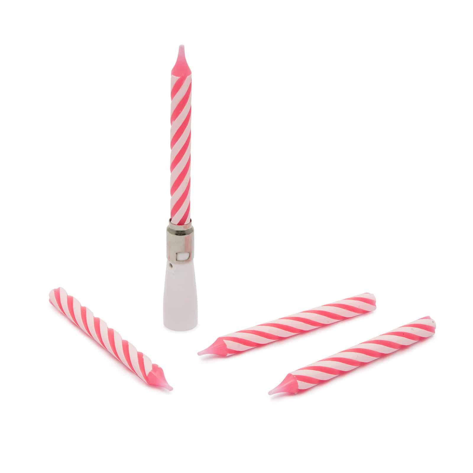 Glasbeno držalo za svečko z vzorcem v modri in roza barvi. Pesem  Happy Birthday začne igrati, takoj, ko odstranite varovalo.