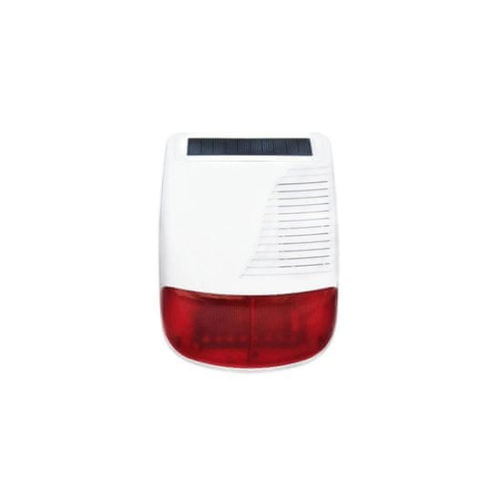 PE-520 stroboskopska sirenaIzdelek je brezžičen in vodoodporen. Zaradi varčevanja z energijo PE-520 napaja sončna energija. Sireno lahko priključite na senzor za vrata, plin ali dim. Sirena signalizira na primer vlom s svetlobnim in zvočnim signalom.VarnostSirena bo delovala v številnih situacijah. Od zdaj naprej se lahko odpravite na dopust brez skrbi, da bi kdo vlomil v vaš dom. PE-520 bo uporaben tudi v banki, trgovini, skladišču ali drugih delovnih mestih.Kako delujeVklopi alarm. Ko tat vstopi v prostor, infrardeči senzorji zaznajo gibanje. Če pride do uhajanja plina ali požara, bodo senzorji sprožili sireno. Lastnik stanovanja bo prejel sporočilo o vlomu in v domu se bo sprožila sirena.Nadzor aplikacijeAplikacija zelo olajša uporabo naprave. Imate tudi dostop do številnih funkcij. Napravo lahko na primer vklopite/izklopite ali izklopite alarm. Specifikacija Proizvajalec PGSTModel PE-520Napajanje DC 3,7 V (3,7 V/400 mAh Li-ion baterija)Največji izhod 5V/150mANajvečji alarmni tok ≤ 170 mABrezžična sprejemna razdalja ≥ 100 mVlažnost okolja ≤ 80 %Tok v stanju pripravljenosti ≤ 1mAObdobje pripravljenosti ≥ 15 dniBrezžična sprejemna frekvenca 315MHz/433MHzDelovna temperatura –30~70℃Raven hrupa 110dBPrejmi kodo PT2262/EV1527Dimenzije 262,2 × 194 × 63,3 mmBela barvaAplikacija Tuya