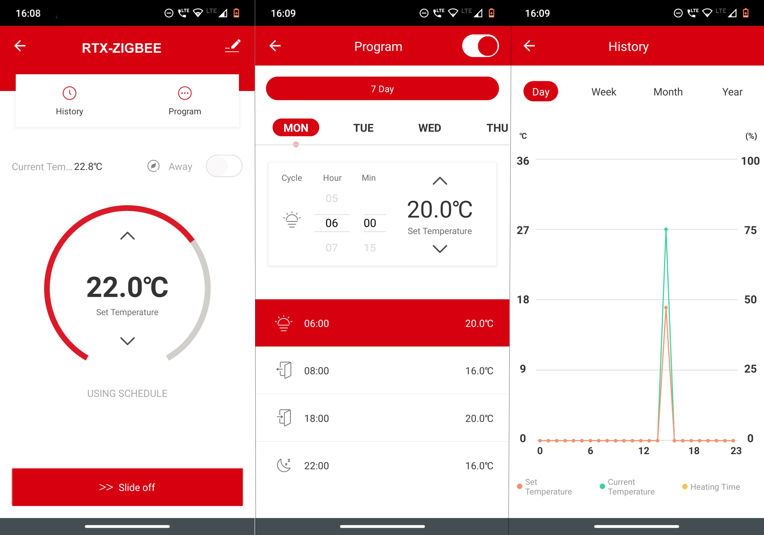 Avtomatizacijo ogrevanja lahko preprosto nastavite glede na čas dneva, nastavljen urnik ali informacije iz drugih sistemskih komponent. Ogled zgodovinskih podatkov do enega leta nazaj vam omogoča nadzor in optimizacijo stroškov ogrevanja v vašem pametnem domu.