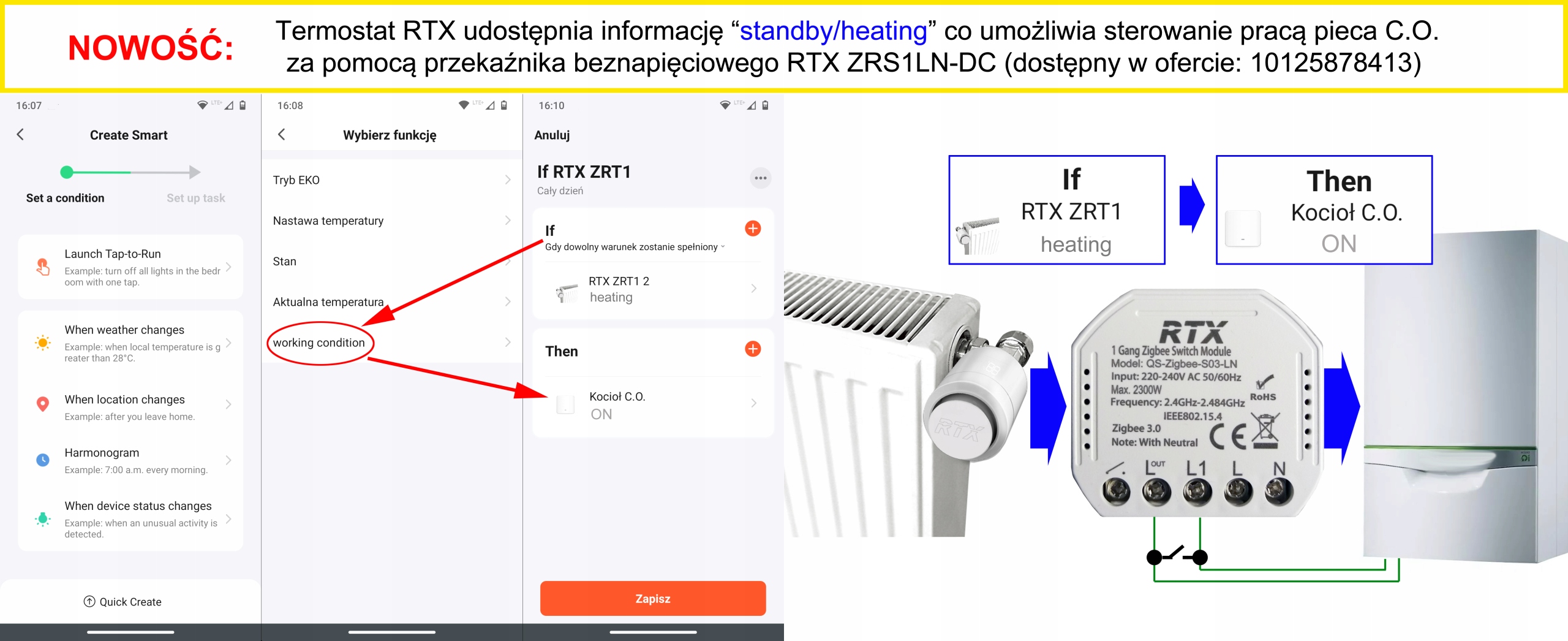 Omogoča inteligentno upravljanje radiatorjev ali daljinsko upravljanje s pametnim telefonom in najbolj priljubljeno aplikacijo za upravljanje pametnega doma. Napredni urnik omogoča natančno nastavitev temperature po urah za vsak dan v tednu, sistem za zaznavanje odpiranja oken pa samodejno zapre ventil radiatorja.