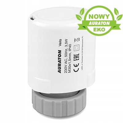 AUARTON Vela Termoelektrični pogon AURATON Vela je bistveni element ogrevalnega sistema, zasnovan za vgradnjo na razdelilne letve talnega ogrevanja. Pogon je na voljo z eno vrsto navoja: M30×1,5 mm. Je vzdržljiv in vsestranski, njegova prednost pa je tiho in gladko delovanje. Pri uporabi z žičnimi letvami AURATON in žičnimi temperaturnimi regulatorji AURATON omogoča samodejno regulacijo temperature v vsaki ogrevalni coni stavbe. AURATON Vela ima kompaktne dimenzije in je enostaven za namestitev.