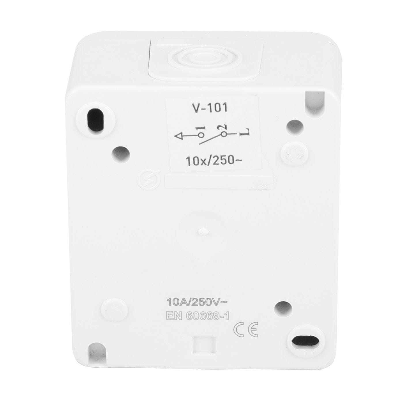 To stikalo za luči z enim ključem, izdelano iz visokokakovostnih materialov, izpolnjuje varnostne zahteve in standarde kakovosti. Stikalo omogoča neodvisen nadzor dveh električnih tokokrogov, zaradi česar je idealno za kompleksne svetlobne in druge sisteme. Z zaščito IP54 je stikalo odporno na prah in vodo, zaradi česar je idealno za uporabo na prostem in v prostorih z visoko vlažnostjo, kot so garaže, kleti, terase in vrtovi. Mere: Višina: 80 mm Širina: 70 mm Globina: 50 mm Dimenzije luknje: 5,25 mm 11,70 mm 16,75 mm Tehnični podatki: Barva: bela Serija: NORA Število ključev: 1 Napetost: 250 V~ Nazivni tok: 10AX Stopnja zaščite: IP54