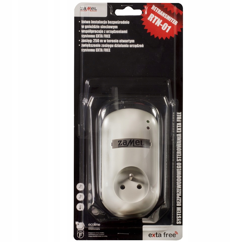 Repetitor RTN-01 je naprava, ki poveča domet signala radijskih oddajnikov v brezžičnem nadzornem sistemu EXTA FREE. Sistem lahko upravlja do štiri repetitorje, kar omogoča povečanje razdalje med oddajnikom in sprejemnikom do 1000 m. Naprava ima prehodno 230 V vtičnico, na katero lahko priključite kateri koli sprejemnik – zahvaljujoč tej rešitvi repetitor ne blokira električne vtičnice. Repetitor RTN-01 je naprava, ki poveča domet signala radijskih oddajnikov v brezžičnem nadzornem sistemu EXTA FREE. Sistem lahko sprejme do štiri repetitorje, kar omogoča povečanje razdalje med oddajnikom in sprejemnikom do 1000 m. Naprava ima prehodno 230 V vtičnico, na katero lahko priključite kateri koli sprejemnik – zahvaljujoč tej rešitvi repetitor ne blokira električne vtičnice.