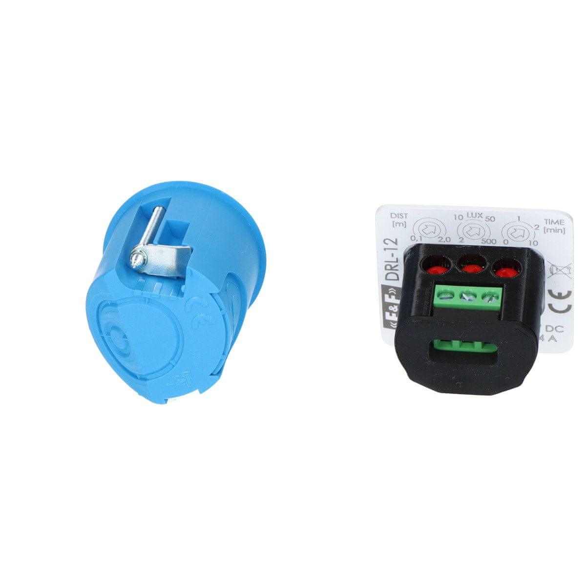 Napajalna napetost 9÷27 V DC Največji tok obremenitve 4 A Prag aktivacije – nastavljiv 2÷500 lx Polje zaznavanja 0,1÷2,0 m nastavljivo Čas vklopa sprejemnika – nastavljiv 0÷10 min. Vrsta zaznavanja ToF laserski senzor Valovna dolžina 940 nm Varnostni razred 1 Priključek vijačni priključki 2,5 mm2 Navor privijanja 0,4 Nm Poraba energije 0,3 W Delovna temperatura –10÷45°C Zunanje dimenzije 45×45×1,5 mm; notranja (škatla) ø35 mm, globina 45 mm Vgradna montaža Zaščitni razred IP40
