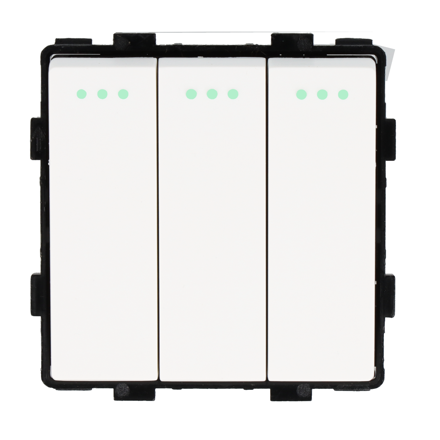 Modul s trojnim mehanskim stikalom iz serije Primo podjetja DC Smart Home – simbol modernosti in elegance. Idealno za zahtevne uporabnike, ki iščejo kombinacijo napredne tehnologije in estetike.