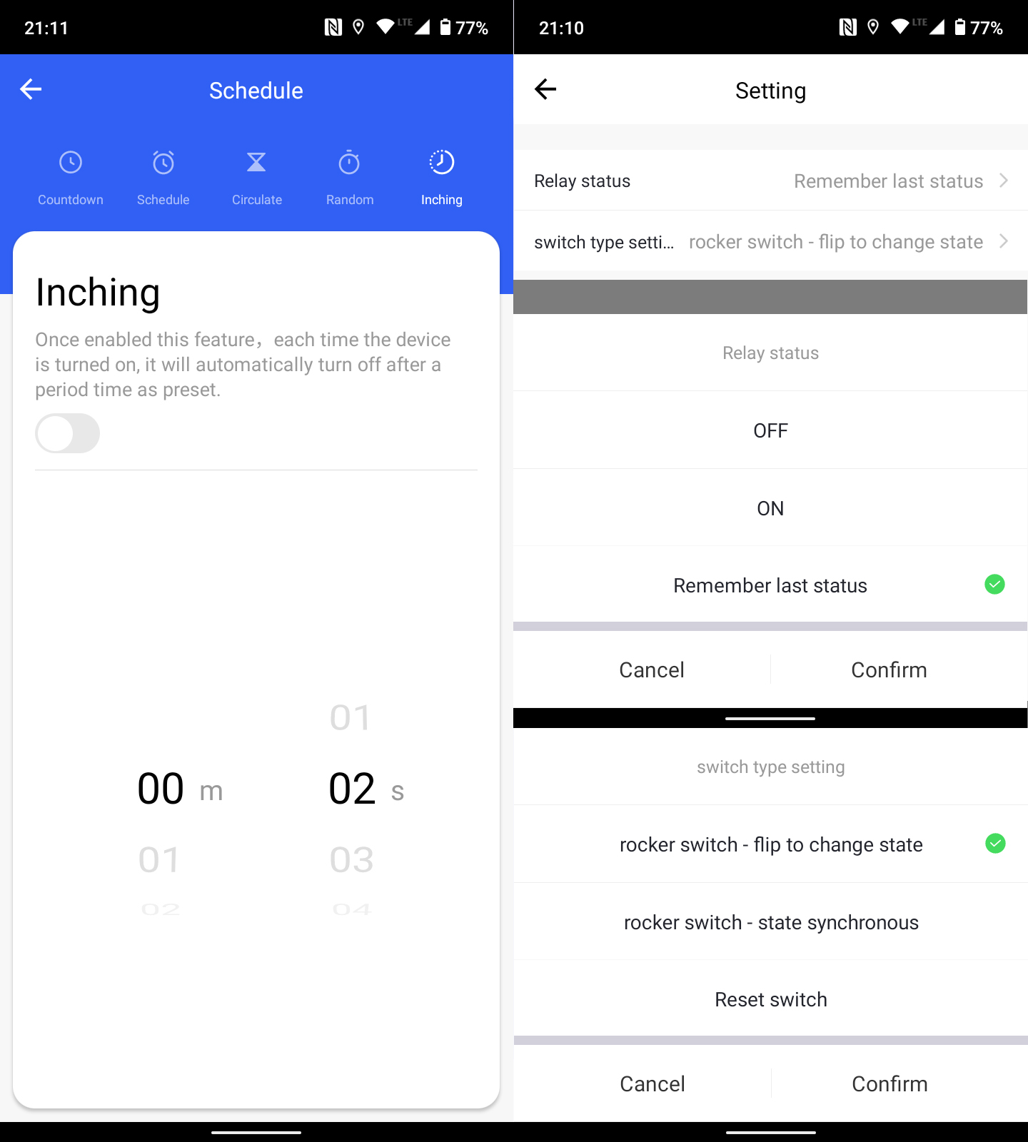 - Stikalo s spremembo stanja le, ko je vklopljeno