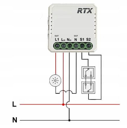 Relejni modul je nameščen v razvodni omarici pod tradicionalnim stikalom za luči. Po priključitvi v skladu s shemo boste lahko luči upravljali na daljavo prek aplikacije, tradicionalno s stikalom ali samodejno v skladu s predhodno programiranimi scenariji.