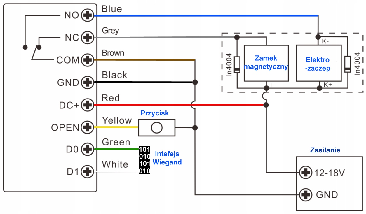 ✅ Nastavljiv čas krmiljenja električne ključavnice in magnetna ključavnica: Nastavite lahko čas impulza za električno ključavnico ali neprekinjen dostop za magnetno ključavnico (način prehoda)
