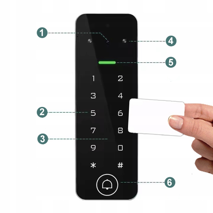 - Do 1000 uporabnikov z RFID karticami Mifare ali PIN kodami.