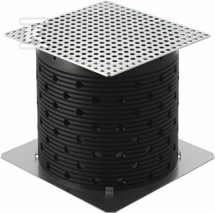 Cevni jašek Pluvia za terasni odtok DN56mm, primeren za zelene strehe. Omogoča pretok 12l/s ali 25l/s. Zasnovan za peš promet z obremenitvijo do 300kg.