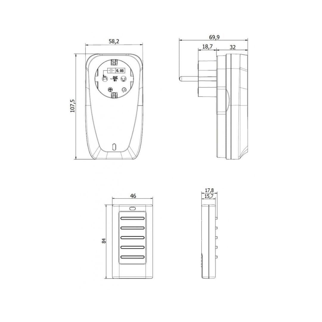 Z 1 vtičem in daljinskim upravljalnikom. Domet 30 metrov v odprtem prostoru brez motenj. Z zaščito otrok ter indikatorsko lučko. Moderen in eleganten dizajn. Vzdržljivost in odpornost na udarce zahvaljujoč uporabljenemu polikarbonatu. Možnost razširitve s 3 dodatnimi vtičnicami in 1 daljinskim upravljalnikom. Priporočljivo za domačo uporabo.