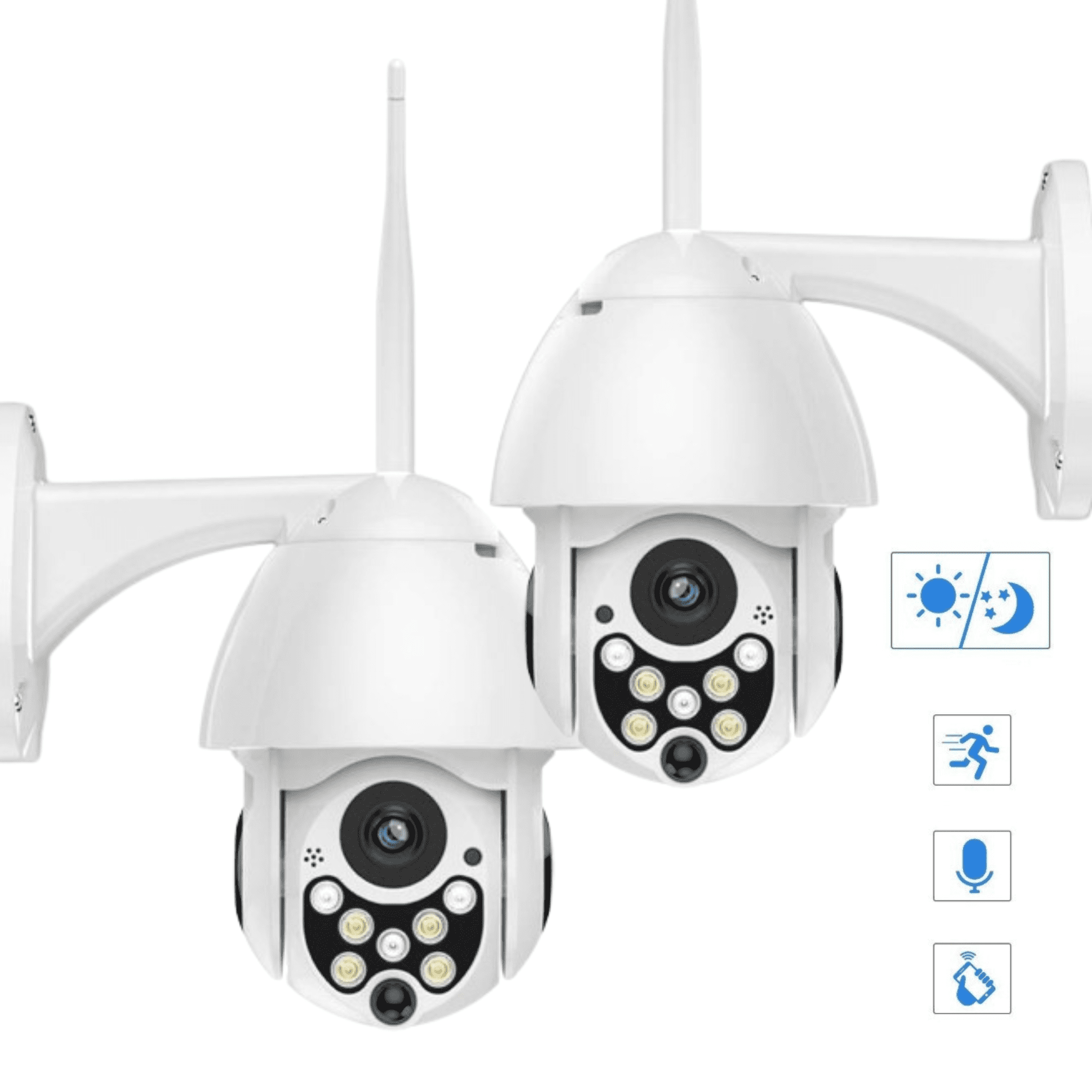 VYZIO® Wifi, Ip, Full-HD, 1080p, 340° Brezžična kamera, Nadzorna kamera, Zunanja kamera, Varnostna kamera, Nočno gledanje (2 kosa) | D2IGICAM