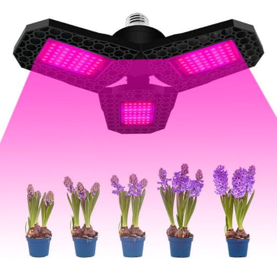 LED sijalka za gojenje rastlin podpira fotosintezo, zahvaljujoč kateri olajša razvoj in prehrano rastlin . Njena uporaba vam omogoča ustrezno nego vaših rastlin, tako majhnih sadik, kot tudi zrelih rastlin. Sijalka je opremljena z LED diodami, ki oddajajo svetlobo dveh valovnih dolžin in sicer 24 kosov rdečih LED diod na vsakem kraku in 12 modrih LED na vsakem kraku. Sijalko uporabljamo tako za osvetljevanje sobnih rastlin (predvsem tistih, ki imajo omejeno količino dnevne svetlobe), hidroponskih posevkov, kot tudi pridelkov v rastlinjaku. Popolna bo tako za amaterske kot profesionalne pridelovalce rastlin. Namestitev je popolnoma enostavna, samo privijte sijalko, kot vsako drugo v izbrano grlo E27 in zasvetila bo mešanica rdeče in modre svetlobe. Krake lahko nastavite do 90 stopinj (gor/dol).