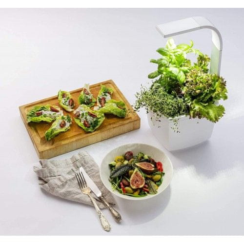 Kitchen Garden T3 je idealen za manjša gospodinjstva ali tiste, ki nimajo veliko prostora za tradicionalno vrtičkarjenje. Z dimenzijami 19,3 × 17,5 × 44,0 cm je kompakten in se brez težav prilega na kuhinjski pult ali polico. Kljub svoji majhnosti pa nudi dovolj prostora za gojenje do treh rastlin, kar omogoča raznolikost v vašem pridelku.