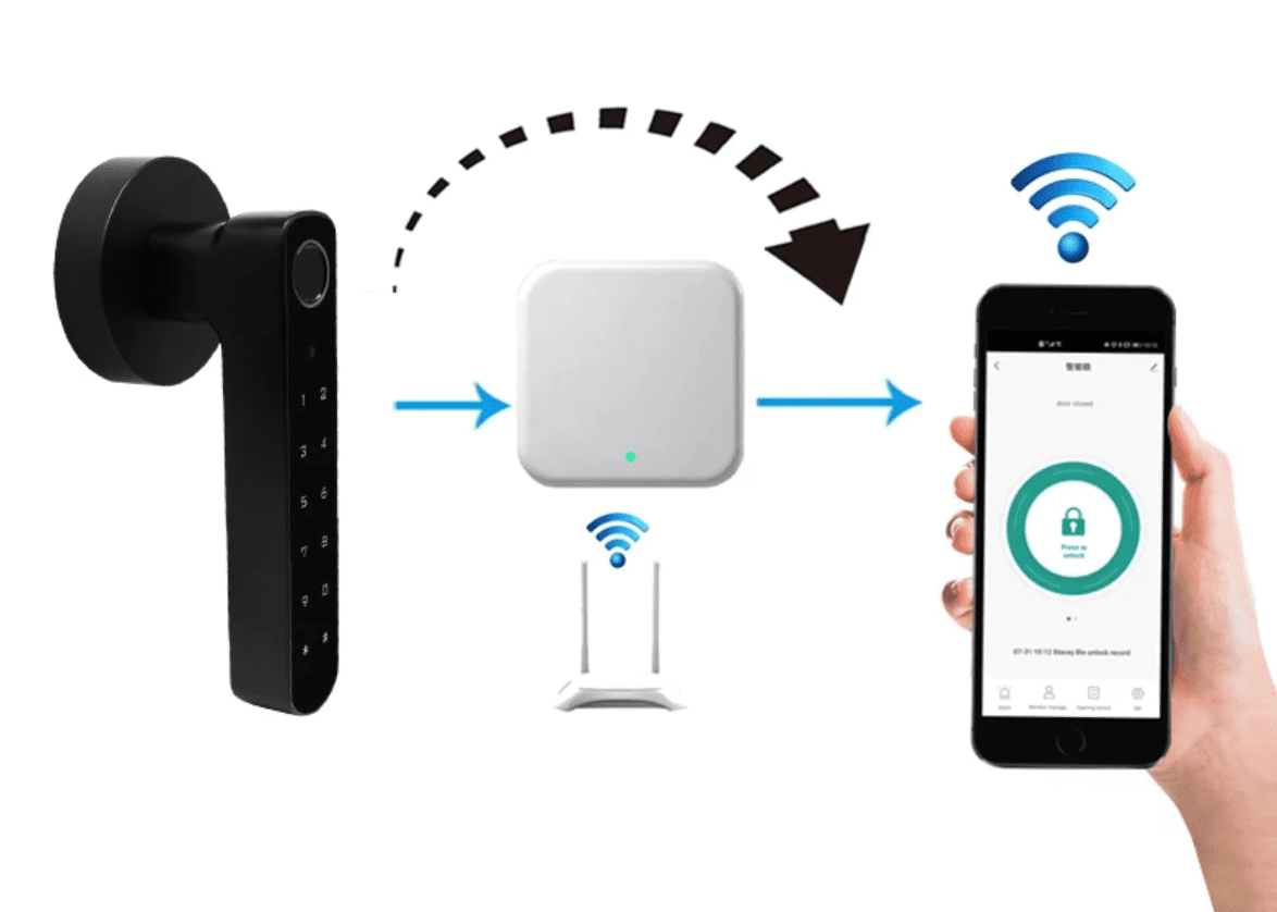 - Pametna kljuka za vrata, ki jo upravljate prek mobilnega telefona Bluetooth.