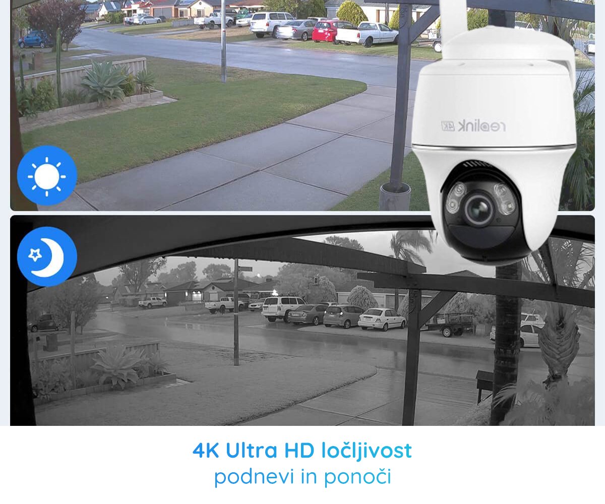 Z ločljivostjo 8 milijonov slikovnih pik (4K Ultra HD) kamera ustvarja ostre in jasne posnetke. Prav tako kamera omogoča gladko premikanje in nagibanje.