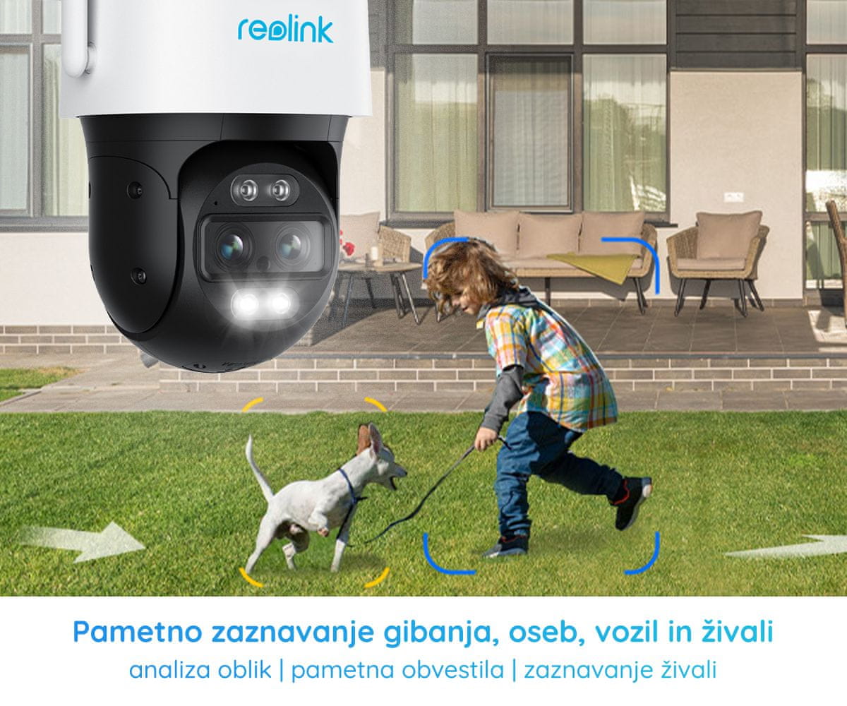 IP kamera Reolink TrackMix W760 je zasnovana za zagotavljanje varnosti za vaš dom. Ta kamera je opremljena z dvema objektivoma in vam omogoča snemanje istega dogodka v celotnem pogledu in od blizu, hkrati! Z ločljivostjo 4K Ultra HD snema video z večjo jasnostjo, zahvaljujoč LED reflektorjem in IR LED lučem pa zajema barvne posnetke tudi ponoči. Dodatno je nameščena tehnologija za zaznavanje gibanja oseb / vozil / živali. Vgrajena ima tudi zvočnik in mikrofon za enostavno dvosmerno komunikacijo. Druge funkcije, ki jih ponuja TrackMix W760 so: brezžično WiFi povezovanje, vrtenje (355°) in nagibanje (90°), samodejno sledenje gibanju, vodoodpornost, brezplačna aplikacija in različne možnosti shranjevanja posnetkov. Celoten opis