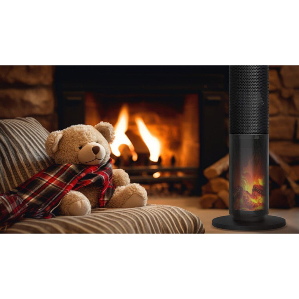 Nagrajena zasnova je okronana z učinkom gorečega kamina, ki senzacionalno izboljša delovanje grelnika ter v vašem domu ustvari zelo prijetno in mirno vzdušje. Za nočno delovanje lahko učinek popolnoma izklopite.