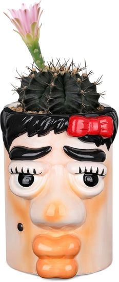 shumee Dekorativni keramični cvetlični lonček z obrazom 21x14cm