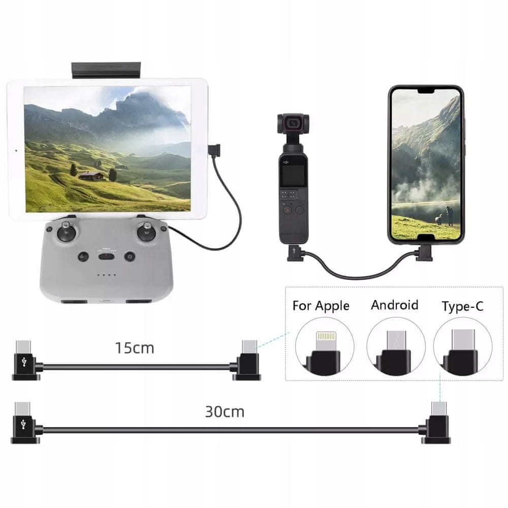 Ta kabel omogoča povezavo krmilnikov dronov s telefoni, pametnimi telefoni in tablicami, kar omogoča prenos slikovnih podatkov med krmilnikom in nameščeno napravo.