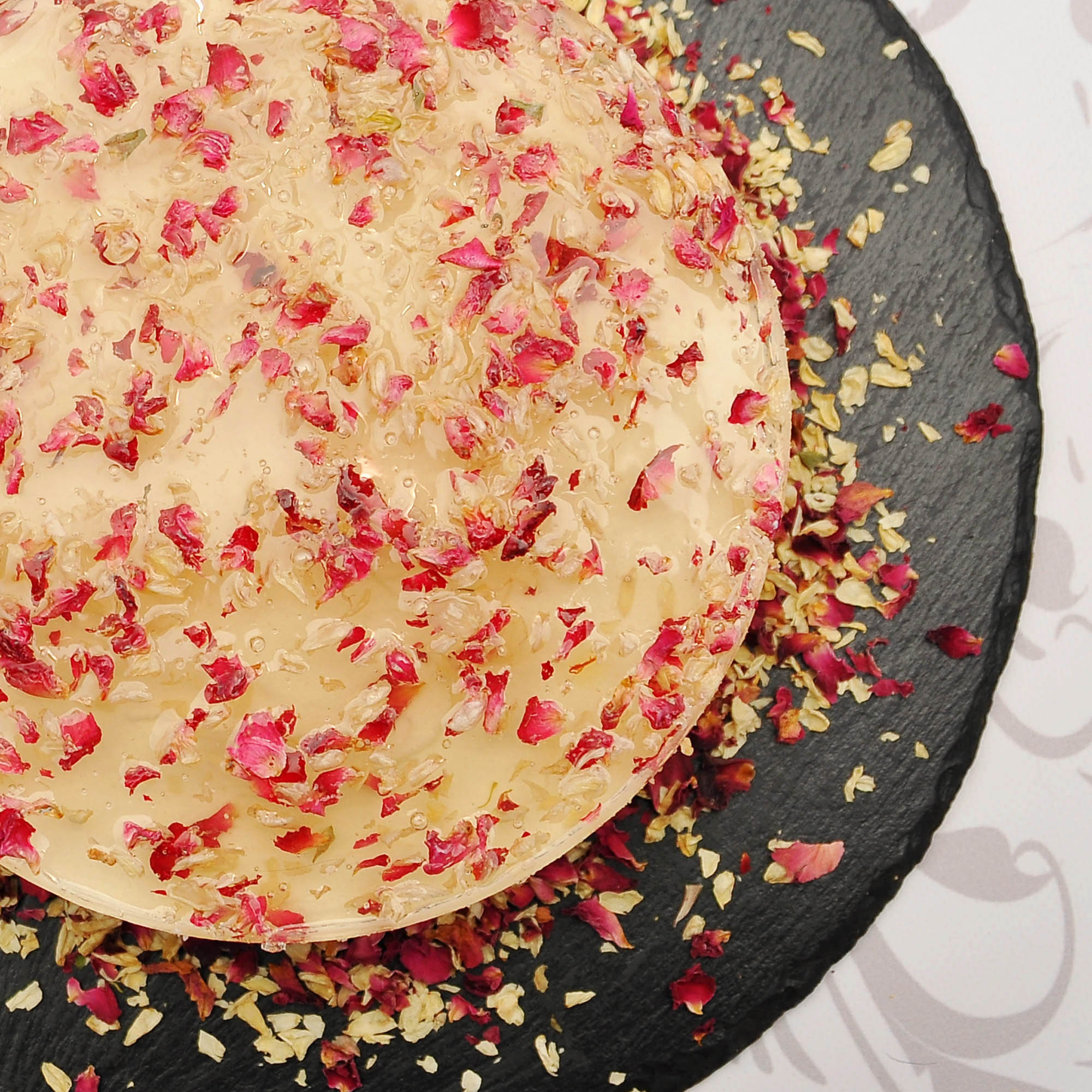 - Sestavine: cvetni listi rdeče vrtnice, cvetni listi jasmina
