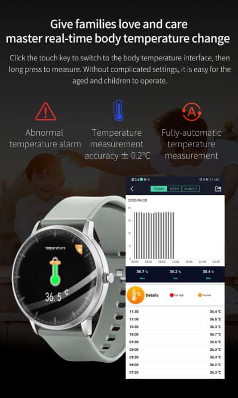 Pametna športna ura T9 je idealna izbira za vse, ki iščejo uro, ki ni le elegantna, temveč tudi uporabna za izboljšanje zdravja in kakovosti življenja. Opremljena je z vrhunskimi funkcijami za spremljanje zdravja, zato lahko spremljate telesno temperaturo, štejete porabljene kalorije ter se zaradi pedometra, budilke in opozorila na dolge seanse ukvarjate s telesno dejavnostjo in zdravim življenjskim slogom.