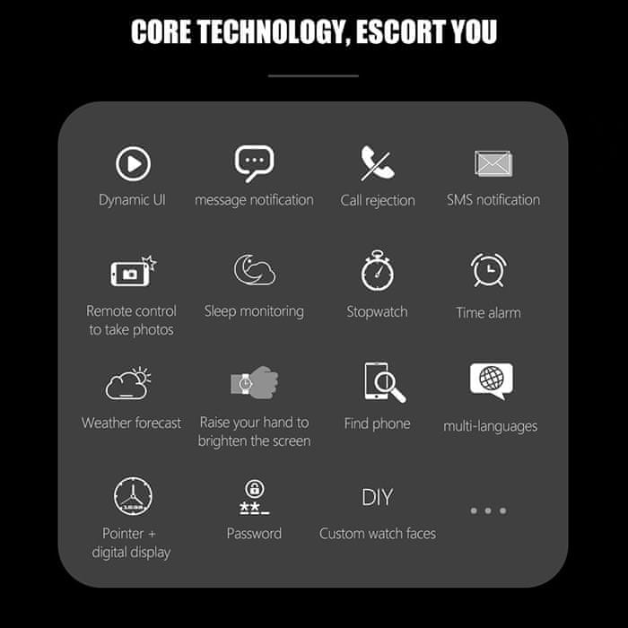Pametna ura je natančno izdelana iz nerjavečega jekla, ter omogoča jasen, visoko resolucijski in občutljiv zaslon, pas iz nerjavečega jekla pa je udoben za nošenje. Dolžino paščka si lahko nastavite po meri tako, da se lahko prilega vsakemu zapestju. Baterija je močno zmogljiva in zagotavlja dolgo življenjsko dobo ure. Podpira vse iOS 10.0 in novejše, Android 7.0 in novejše pametne telefone.