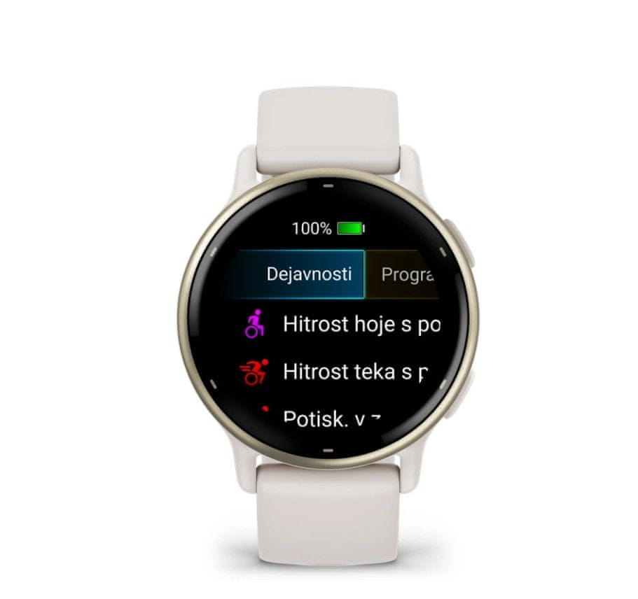 | Profili dejavnosti | RAZPOLOŽLJIVI PROFILI TELOVADNIH DEJAVNOSTI: Moč, HIIT, Kardio Vadba, Vadba na Eliptičnem Trenažerju, Vadba na Veslaški Napravi, Pilates, Joga DOBRO POČUTJE: Walking, Pilates, Yoga TRENING V ZAPRTIH PROSTORIH: Treadmill Running, Indoor Track Running TEK NA PROSTEM: Running RAZPOLOŽLJIVI PROFILI ZA REKREACIJO NA PROSTEM: Smučanje, Deskanje na snegu , Tek na smučeh v klasični tehniki, Krpljanje, Veslanje na deski, Veslanje, Tennis, Padel, Disk golf RAZPOLOŽLJIVI PROFILI KOLESARJENJA: Kolesarjenje, Kolesarjenje v Zaprtih Prostorih, kolesarjenje z električnim kolesom, ročno kolesarjenje, ročno kolesarjenje v zaprtem prostoru RAZPOLOŽLJIVI PROFILI PLAVANJA: Plavanje v bazenu, plavanje v odprtih vodah NA VODI: Stand Up Paddleboarding, Rowing ŠPORTI Z LOPARJEM: Tennis, Pickleball, Padel ŠPORTI NA SNEGU IN ZIMSKI ŠPORTI: Skiing, Snowboarding, XC Classic Skiing, Snowshoeing |