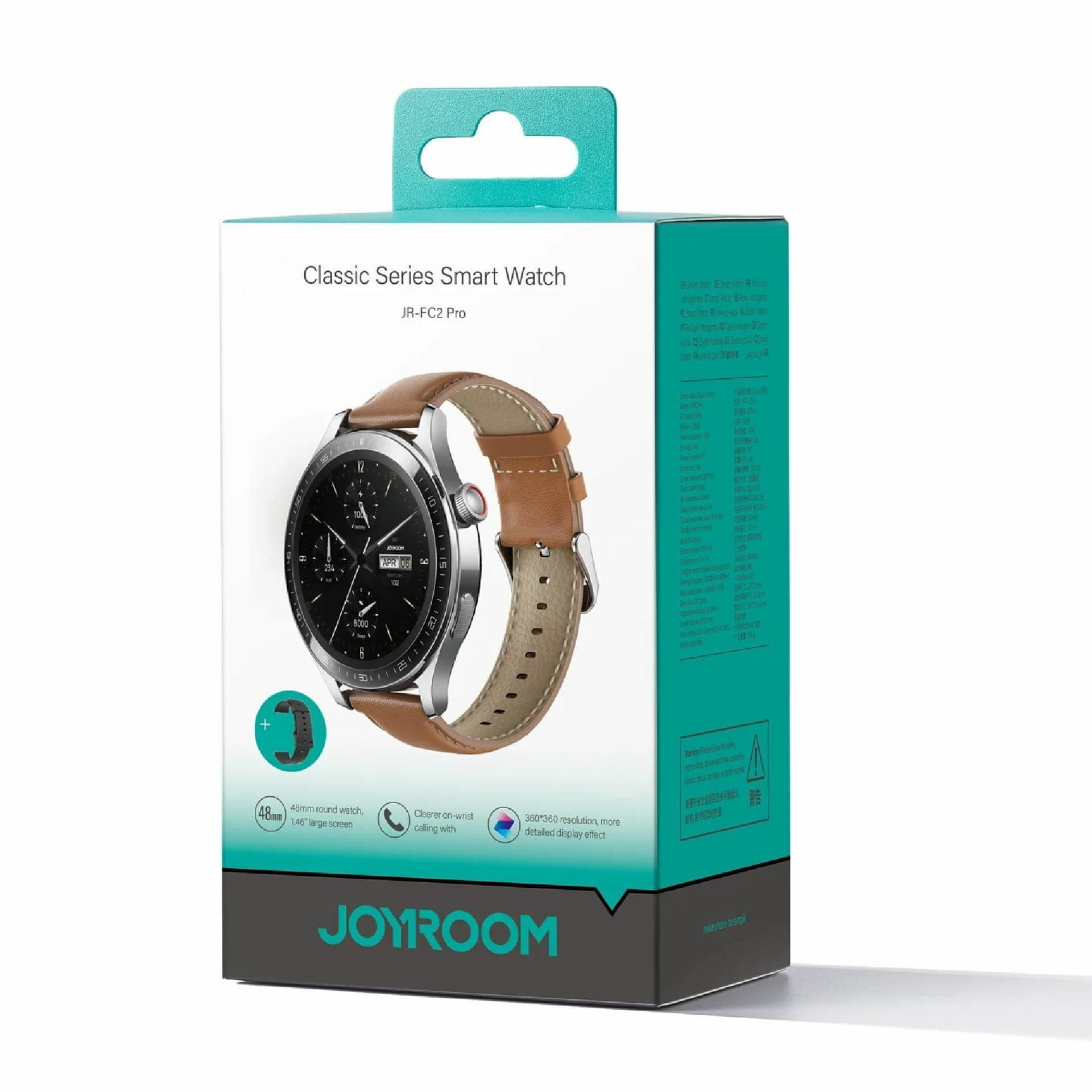 Pametna ura Joyroom Classic Series JR-FC2 Pro je opremljena z velikim 1,46-palčnim zaslonom in omogoča telefoniranje prek Bluetootha, ne da bi telefon vzeli iz žepa. Vodoodpornost, različne funkcije za spremljanja zdravja in dolga življenjska doba baterije. Priložena paščka – črn športni silikonski in elegantno rjavo usnje.