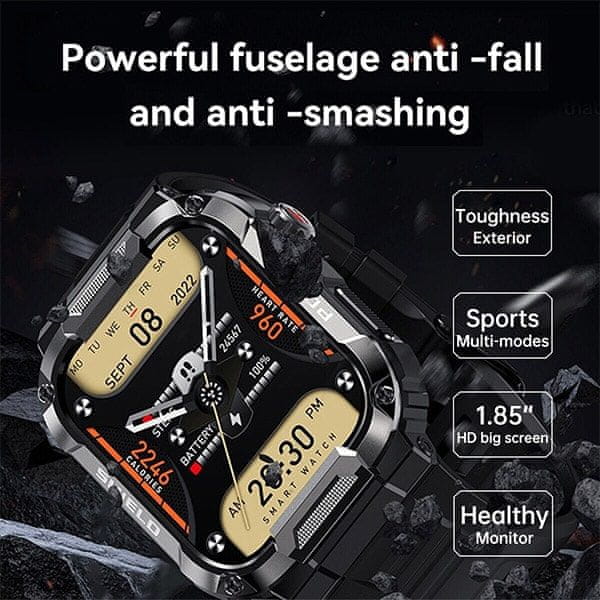 Ta pametna ura, izdelana v skladu z vojaškimi standardi, je bila izdelana za zahtevne razmere in je prestala temeljite teste vzdržljivosti, ki zagotavljajo njeno odpornost.