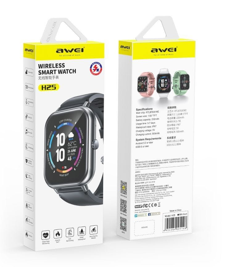 Ure H25 podjetja Awei objamejo vaše zapestje in se elegantno zlijejo z vašo opremo. Premišljen dizajn aluminijastega ohišja v kombinaciji z mehkim in udobnim silikonskim paščkom vnaša kanček elegance v vaše športne aktivnosti. Velik 1,83" zaslon jasno prikazuje vse informacije o vaših športnih aktivnostih, času, telesnem stanju, načrtovanih opravilih in prejetih sporočilih. Na njem lahko igrate tudi nekaj mini iger, ki so prednameščene v uri.