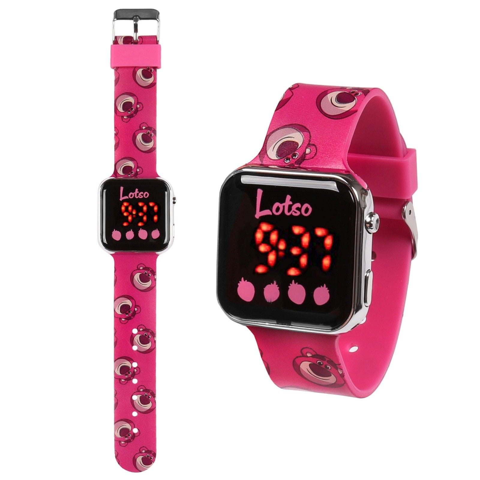 Digitalna ura LED za otroke z motivom Disney Toy Story Lotso je praktičen in barvit pripomoček, s katerim se bodo najmlajši uporabniki zlahka in zabavno naučili odčitavati čas.