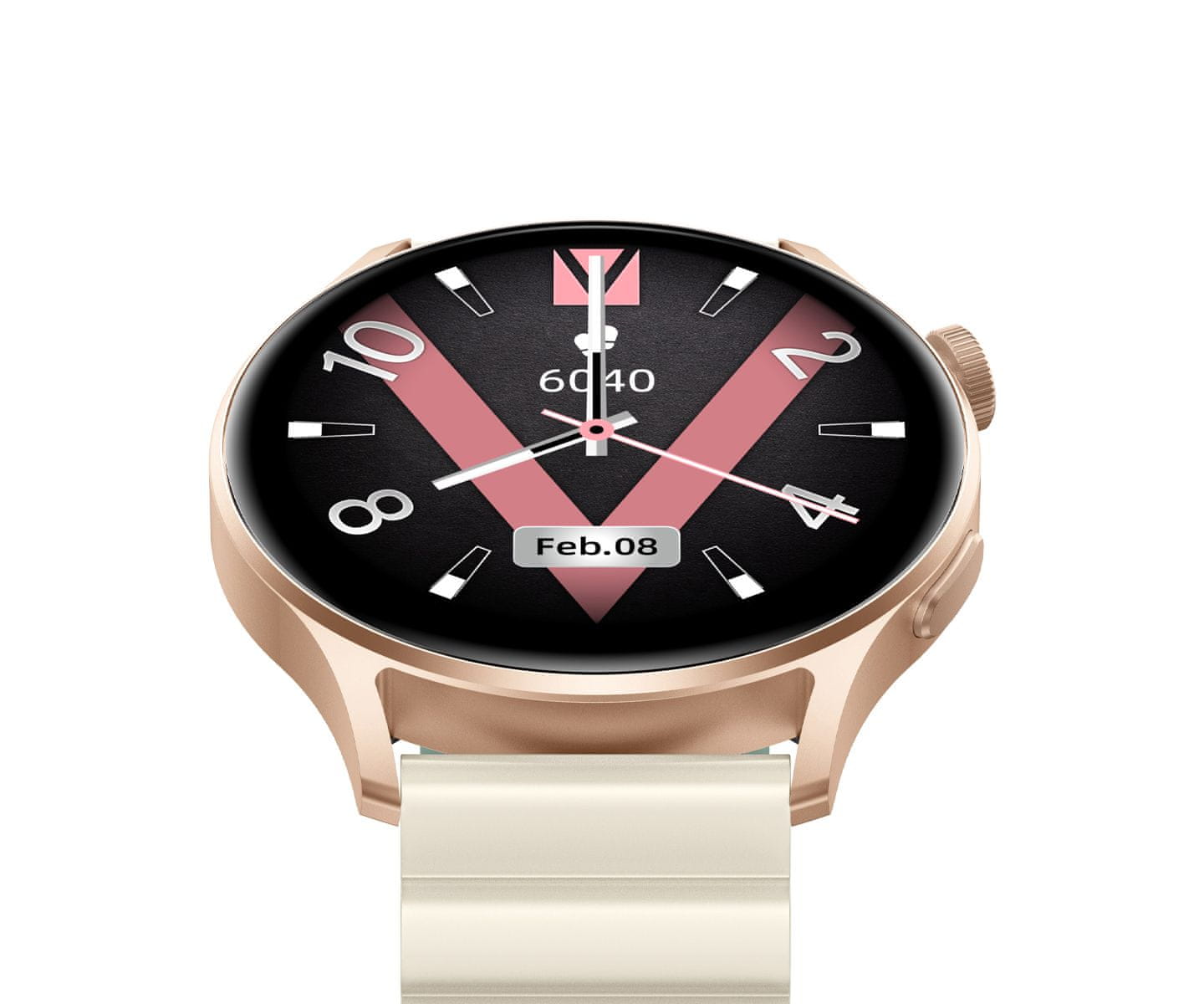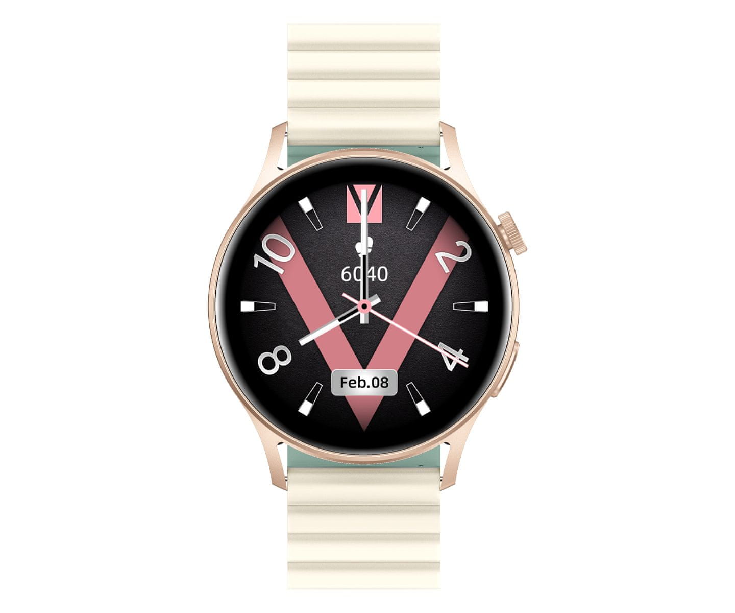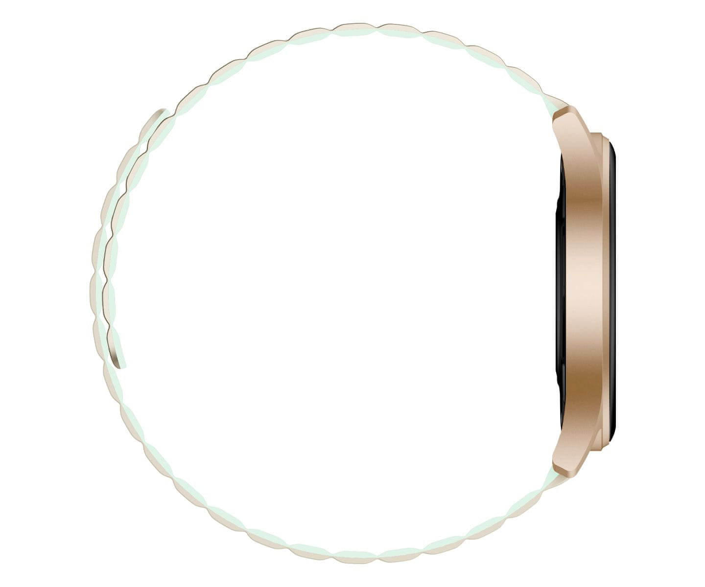 | Splošno | Tip ure: pametna Število gumbov: 2 (1× vrtljiva digitalna krona / gumb, 1× navaden gumb) Material ohišja: aluminijeva zlitina Material paščkov: trpežen silikon Barva: zlata (Gold) |