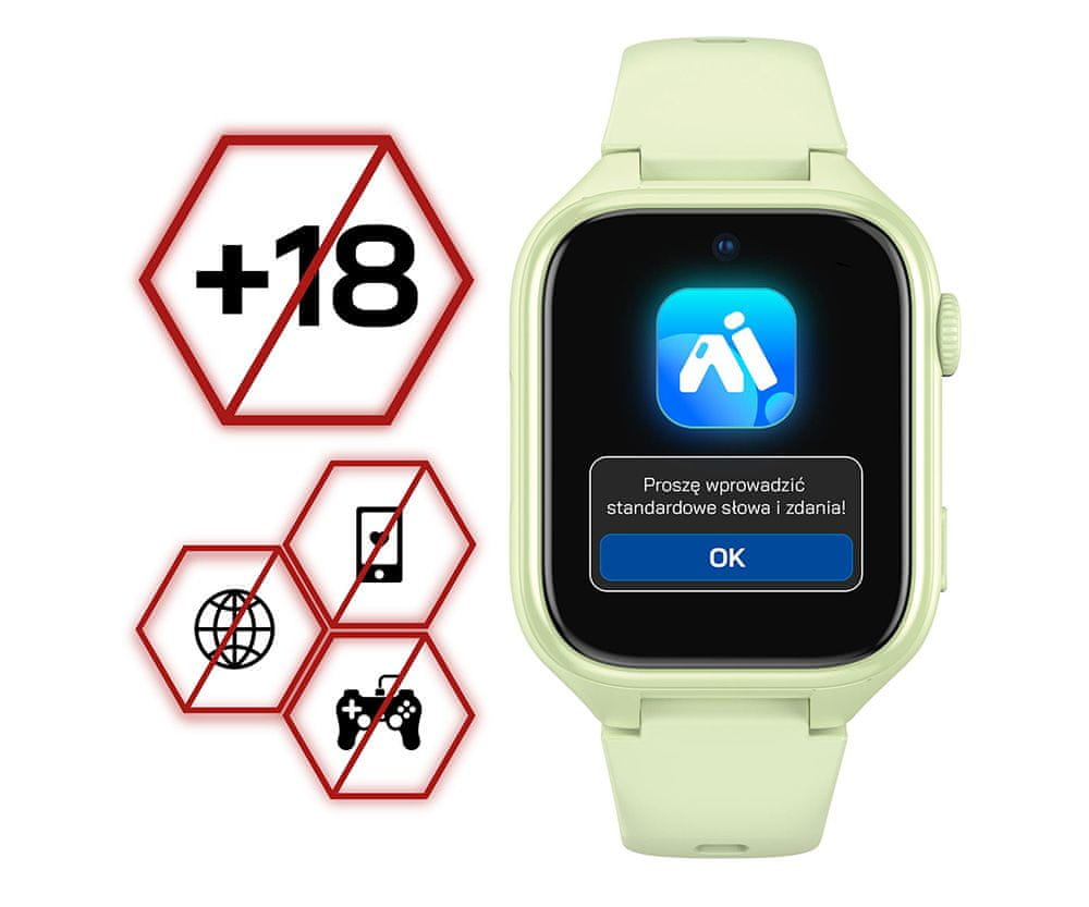 Manta Stelio Junior PRO AI 4G otroška pametna ura, GPS+WIFI+LBS lociranje, SOS gumb, zelena (Pistacchio Green)