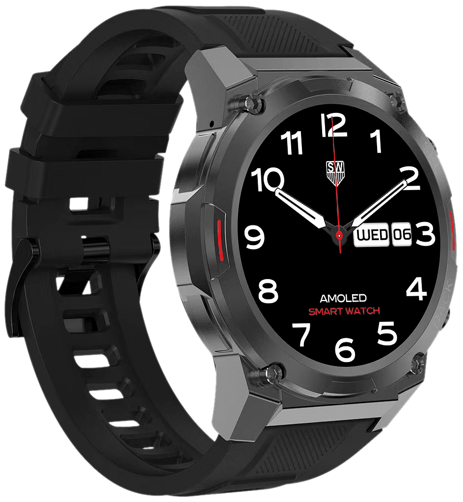 - Velik okrogel 1,3" AMOLED zaslon z HD+ ločljivostjo 390×390px, s stransko vrtljivo krono