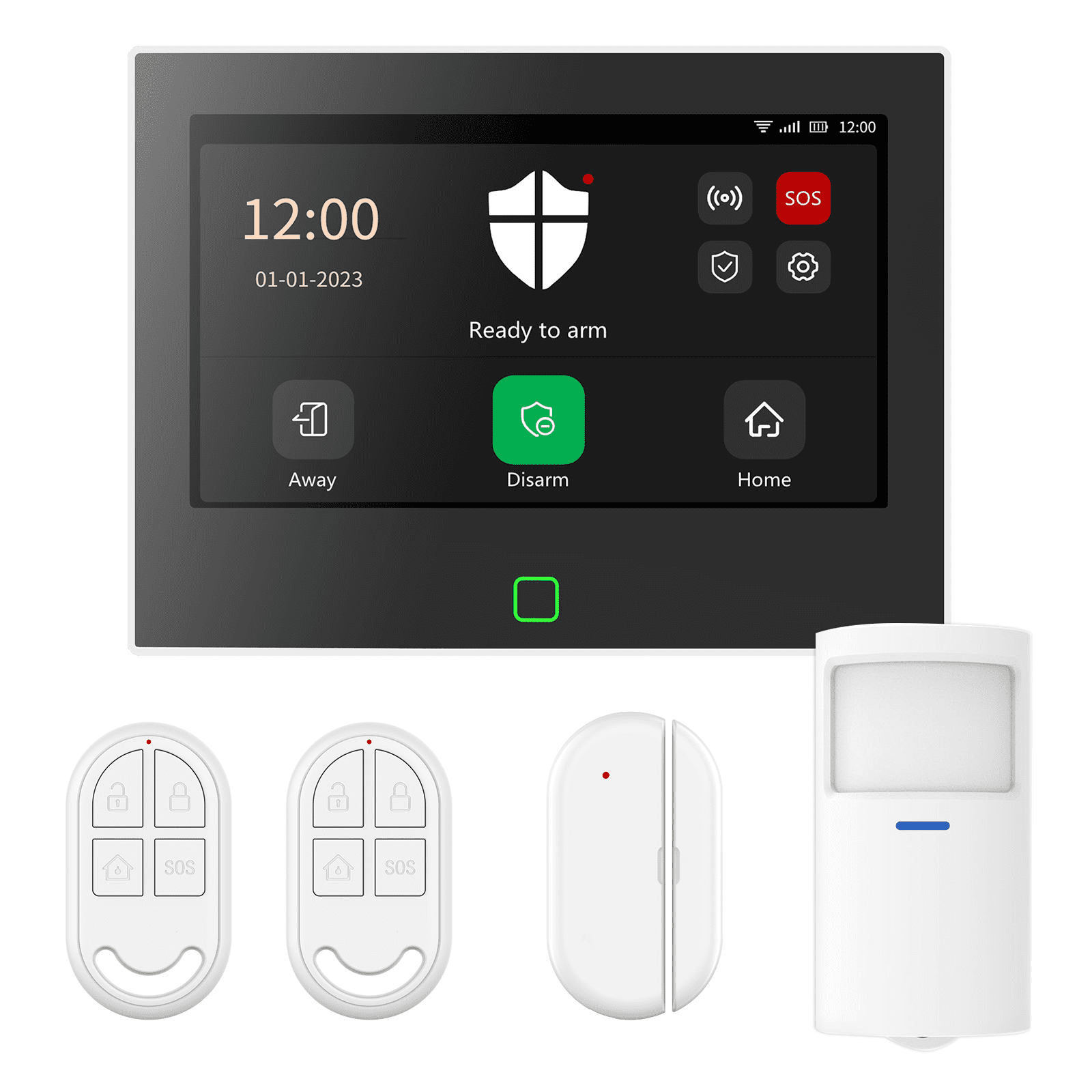 Štirje daljinski upravljalniki, ki so vključeni v paket, omogočajo, da lahko sistem upravlja več uporabnikov. Z daljinskimi upravljalniki lahko hitro aktivirate, deaktivirate ali sprožite alarm v nujnih primerih. Tako lahko sistem učinkovito uporabljajo vsi člani gospodinjstva.