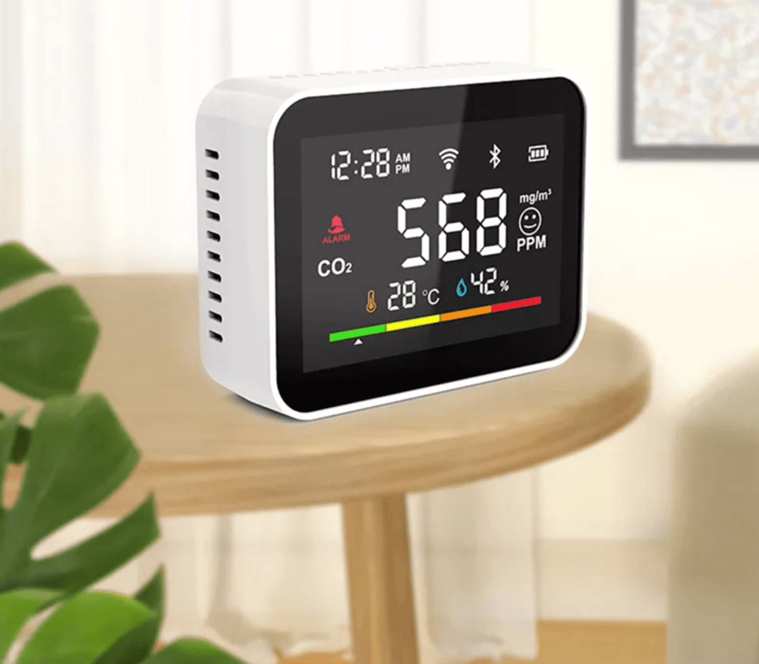 Pametni detektor ogljikovega dioksida ima štiri ravni koncentracijeogljikovega dioksida: