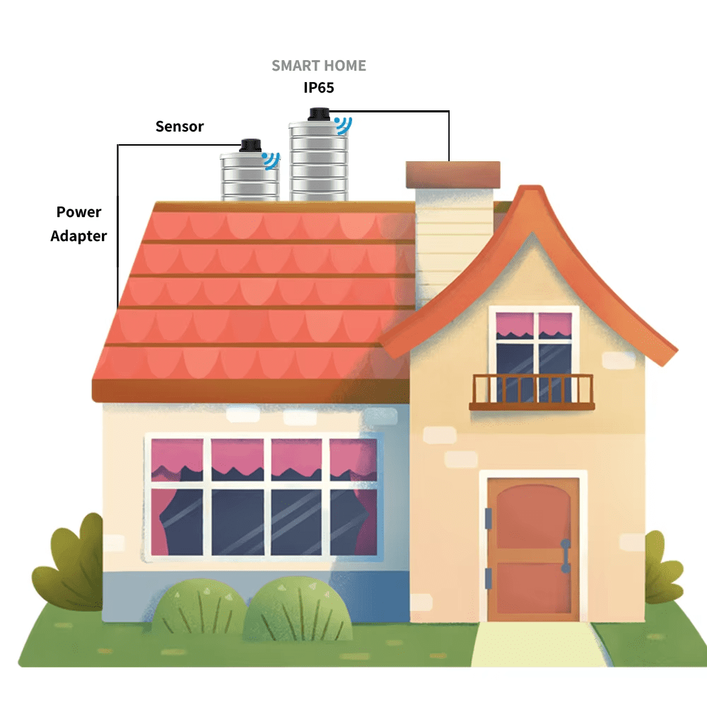 Naprava se poveže prek 2,4 GHz WiFi in vam omogoča nastavitev opozoril, ko je dosežena kritična raven vode, kar pomaga preprečiti škodo, ki jo povzroča prelivanje ali, nasprotno, pomanjkanje vode. S stopnjo zaščite IP65 je senzor odporen proti prahu in vodi ter primeren za zahtevnejše pogoje.