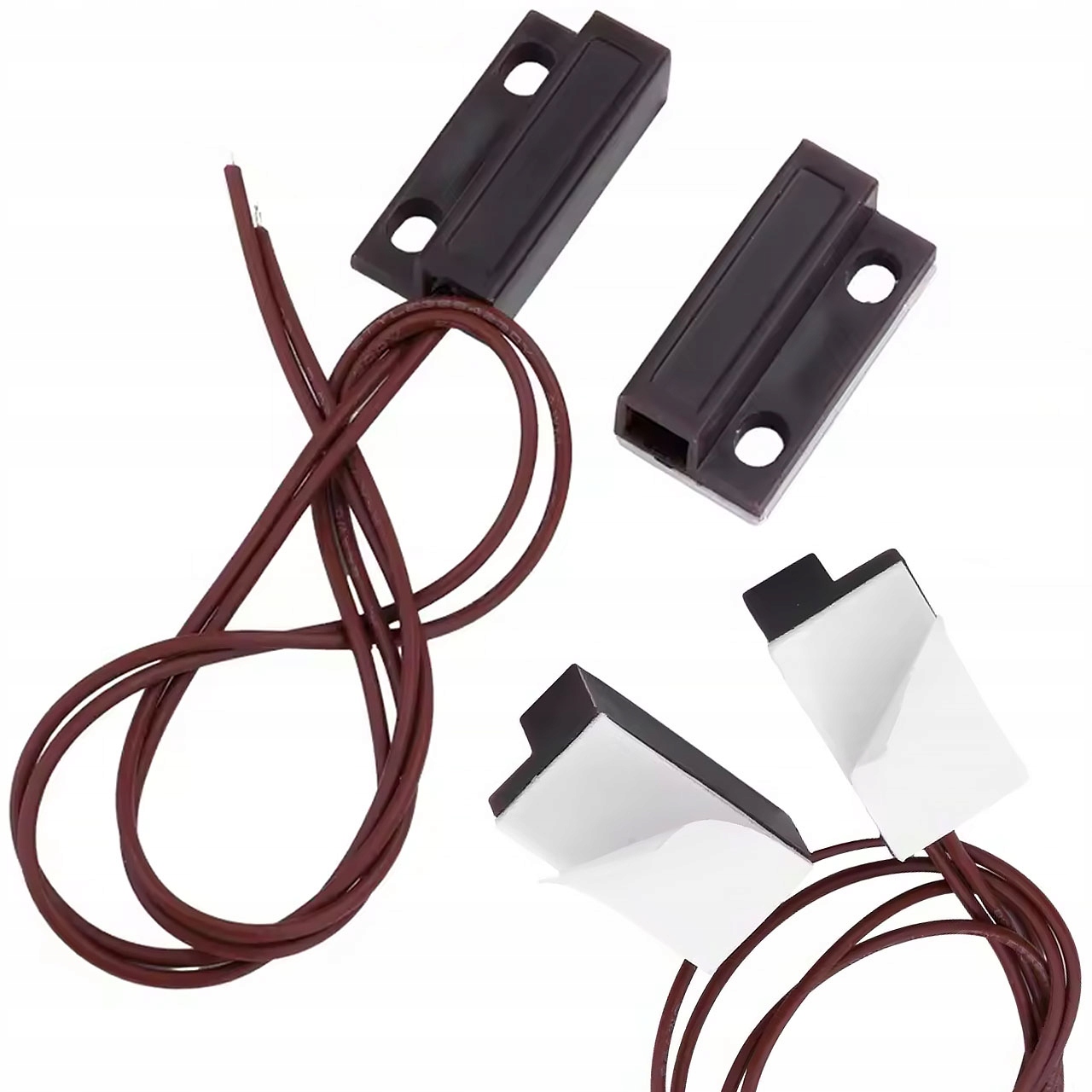 MagSens MC-38 NO Brązowy/ Biały – Czujnik otwarcia magnetyczny | Do systemów Shelly, Sonoff | Wewnętrzny | Montaż taśma/wkręty | Bez zasilania | Kompaktowy