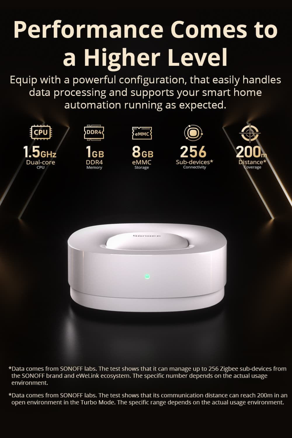 SONOFF Zigbee Bridge Ultra je napreden prehod Zigbee, zasnovan za nemoteno integracijo podnaprav Zigbee v ekosistem Matter. Opremljen z zmogljivim čipom EFR32MG21, ta most ponuja izboljšane zmogljivosti obdelave, z dvojedrnim CPU-jem, ki deluje na 1,5 GHz, 1 GB DDR4 RAM-a in 8 GB pomnilnika eMMC. To zagotavlja robustno zmogljivost in nemoteno delovanje. Podpira do 256 podnaprav Zigbee in se ponaša s komunikacijskim dosegom do 200 metrov v načinu Turbo, kar zagotavlja široko pokritost in zanesljivo povezljivost po vsem domu.