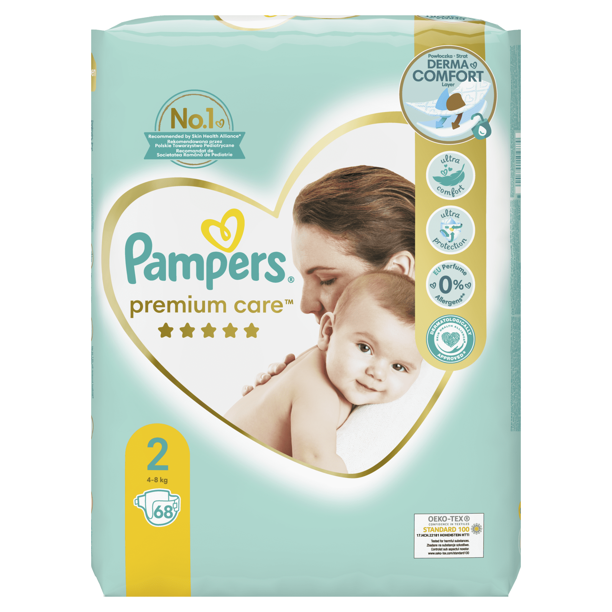 Pakiranje Pampers Premium Care 2 (Mini) vsebuje 68 kosov plenic, kar zadostuje za cel mesec čistoče in svežine za vašega malčka oziroma malčico. Plenice Premium Care so izjemno kakovostne, saj so za kakovostno zaščito kože ocenjene s petimi zvezicami, nežne in svileno mehke pa so na zunanji in notranji strani. Odlikujejo jih odlična vpojnost in zračnost, zaradi česar bo otroška koža zdrava, otrok pa zadovoljen.